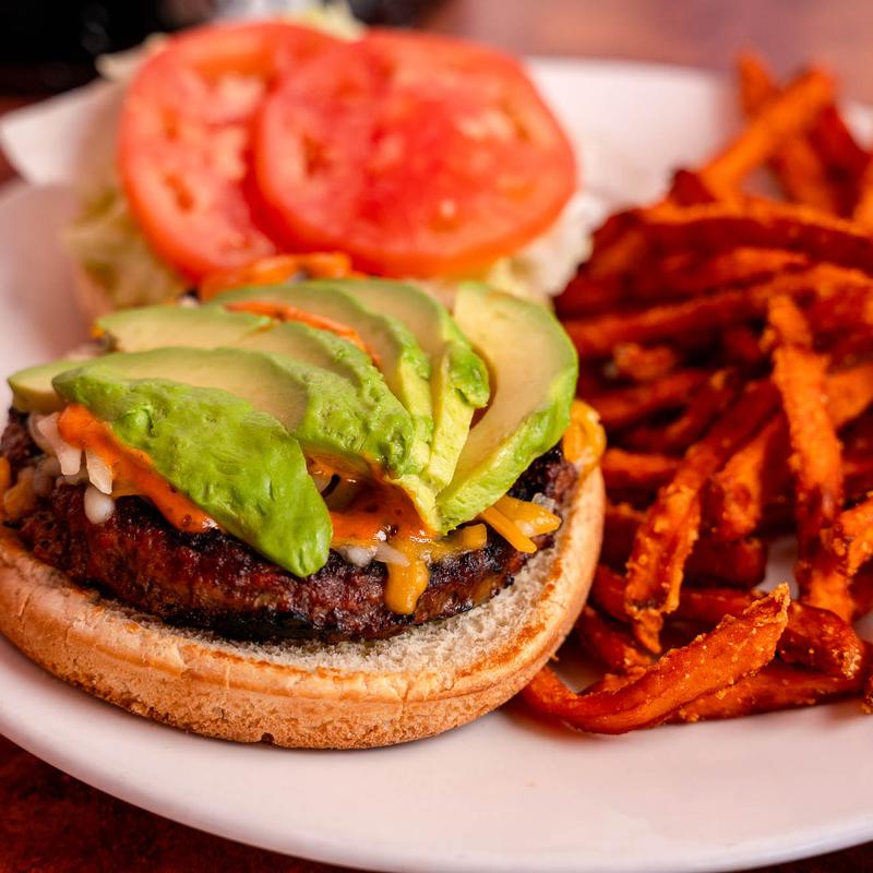 100% black Angus ground meat chargrilled and topped with sauteed onions and mushrooms served with mashed potatoes and vegetables.